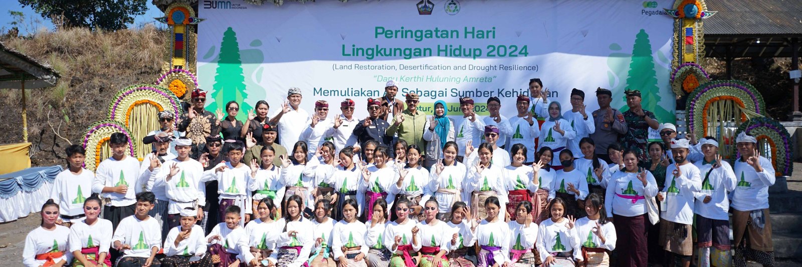 Memperingati Hari Lingkungan Hidup (HLH) Sedunia, PT Pegadaian bersama Forum Sahabat Emas Peduli Sampah Indonesia (FORSEPSI) menggelar aksi lingkungan sebagai bentuk apresiasi dan dukungan atas langkah Pemerintah Kabupaten Bangli dalam menggerakkan OPD (Organisasi Perangkat Daerah) dan Sekolah dalam memproduksi Eco Enzyme yang merupakan cairan alami hasil dari fermentasi sampah organik. Eco Enzyme dituangkan secara berkelanjutan guna memperbaiki kualitas air Danau Batur. Kegiatan tersebut diselenggarakan di Danau Batur, Kabupaten Bangli, Bali pada Kamis 27 Juni 2024. Sejalan dengan tema HLH tahun 2024 “Land Restoration, Desertification, and Drought Resilience”, kegiatan yang dihadiri oleh 150 peserta dari penggiat lingkungan dan pelajar peduli lingkungan Kabupaten Bangli ini mengusung sub tema Danu Kerthi Huluning Amreta (memuliakan air sebagai sumber kehidupan). Pelaksanaan kegiatan diawali dengan penyelenggaraan talkshow hybrid bersama pembicara diantaranya Kepala Dinas Lingkungan Hidup Kabupaten Bangli I Putu Ganda Wijaya, Ketua Forsepsi Mina Dewi Sukmawati, dan juga Guru Besar Universitas Udayana Ni Luh Kartini. Talkshow ini mengungkapkan alasan pemerintah menggiatkan program produksi eco enzyme di Kabupaten Bangli, dan juga mengungkapkan pandangan ahli dan praktisi lingkungan mengenai kondisi Danau Batur dan gerakan eco enzyme serta dukungan Forsepsi sebagai kumpulan aktivis lingkungan dalam penanganan sampah. Kemudian pada puncak kegiatan dilakukan gerakan menuangkan 10.000 liter eco enzyme di Danau Batur oleh Wakil Bupati Bangli, Pemimpin wilayah PT Pegadaian dan peserta. Kegiatan ditutup dengan penyerahan bantuan bantuan berupa molase 1 ton dan 15 tong sampah kepada Pemkab Bangli. Kolaborasi ini diperkuat dengan adanya penandatangan komitmen bersama mengenai Pengelolaan Sampah Melalui Bank Sampah untuk mendukung Peraturan Menteri LHK Nomor 14 Tahun 2021 antara Pemkab Bangli dan Forsepsi yang disaksikan oleh pihak PT Pegadaian. Pemimpin Wilayah PT. Pegadaian Kanwil VII Denpasar Supriyanto mengatakan, “Melakukan edukasi tidaklah mudah, jadi harapan kami kegiatan ini bisa menjadi inspirasi bagi teman-teman di luar sana. Seperti kita ketahui bersama, eco enzyme bisa menguraikan polutan di laut. Danau Batur sudah jauh lebih baik dari sebelumnya. Terima kasih dukungan pemerintah Kabupaten Bangli yang telah mewujudkan acara ini.” Wakil Bupati Bangli, I Wayan Diar selaku tuan rumah pelaksanaan HLH juga menyampaikan apresiasi kepada PT Pegadaian dan Forsepsi atas atensi yang diberikan kepada Danau Batur. Beliau juga menuturkan bahwa dari 15 Danau yang harus diselamatkan, Danau batur berada di urutan ke-7 sehingga perlu ada aksi yang lebih besar lagi dari masyarakat dan pemerintah. Besar harapan beliau agar kedepannya dapat terjalin kolaborasi dengan Pegadaian dan Forsepsi untuk memantik dan memicu gerakan untuk penyelamatan lingkungan yang lebih besar lagi di Kabupaten Bangli.